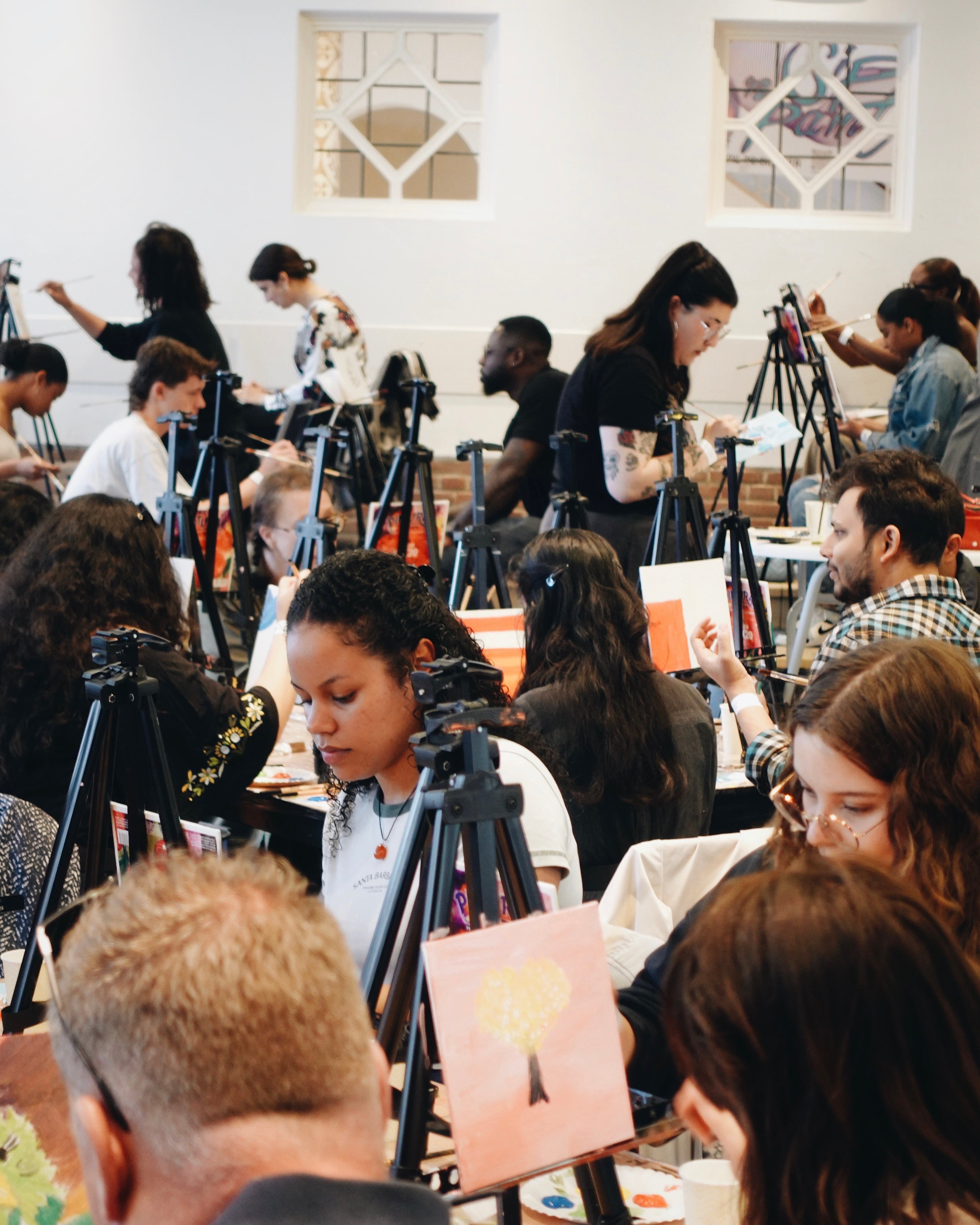 De formule voor Sip 'N Paint Rotterdam is eenvoudig maar krachtig: een veilige ruimte om te schilderen, verbinding te maken en te genieten van heerlijk eten, ambachtelijke cocktails en livemuziek. We creëren een sfeer die je creativiteit aanwakkert, je in staat stelt jezelf uit te drukken en je achterlaat met dierbare herinneringen.
